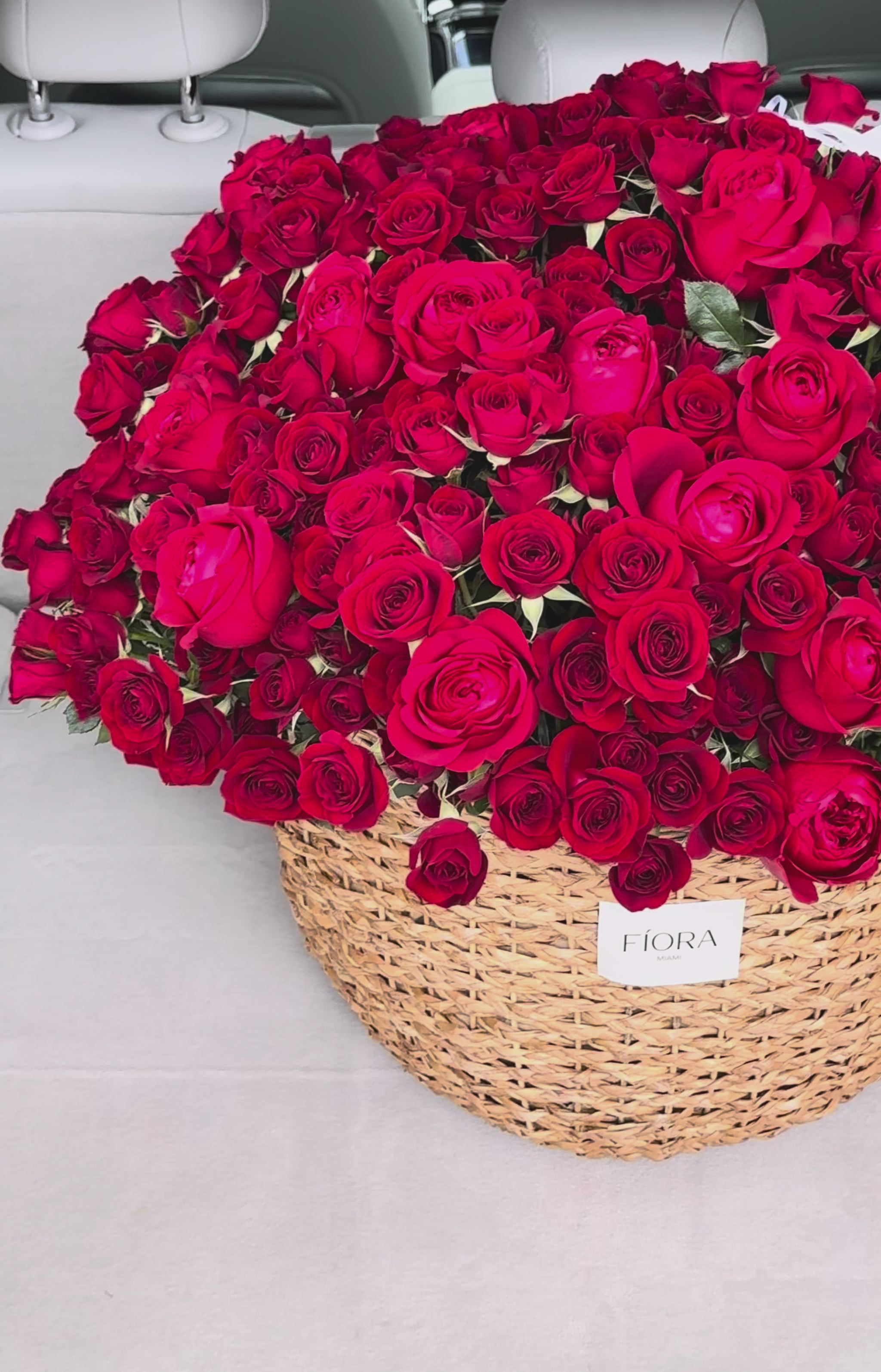 Arranged in a natural jute basket and finished with the signature FÍORA ribbon, this design perfectly balances sophistication and warmth.